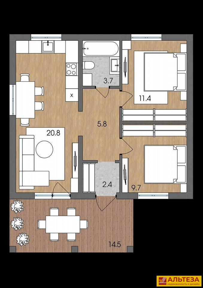 Кухня-гостиная 25,1 м² с выходом на террасу 25 м² (при желании можно застеклить)