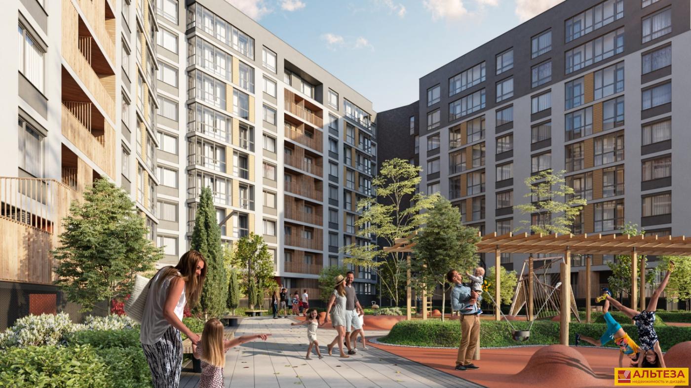 Дом сдан. Вход в подъезд на уровне земли. Придомовая территория по принципу «двор без машин», есть детские и спортивные площадки.