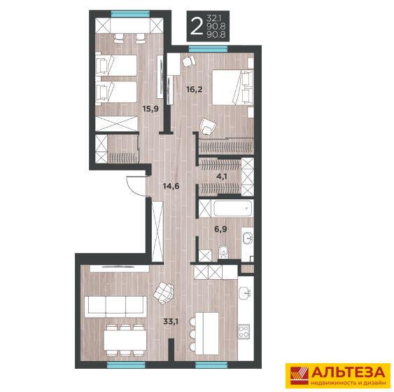90.8 м²