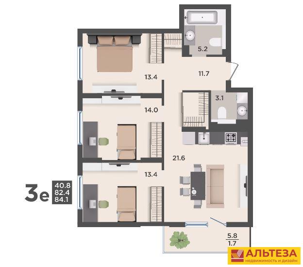• Общая площадь 84.1 м²