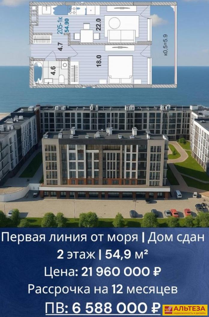 Приобрети просторную, 1-на комнатную квартиру (не апартаменты ), на первой береговой линии Балтийского моря!!!