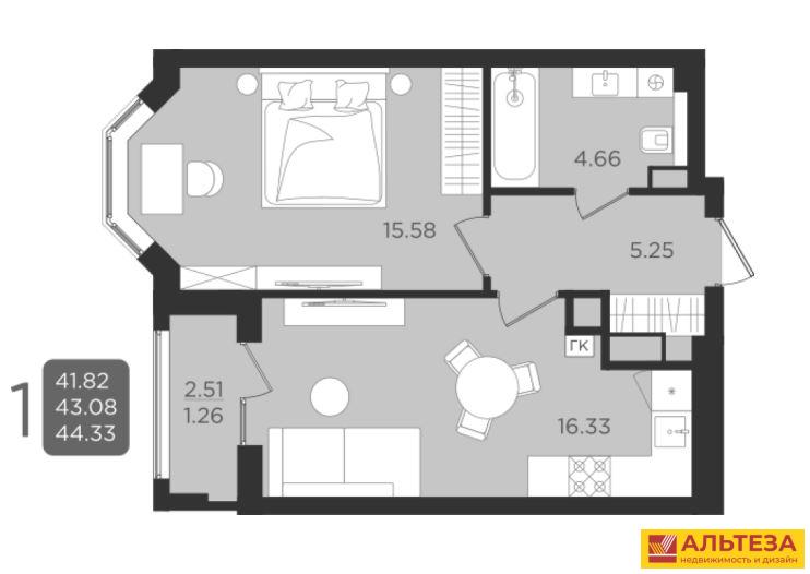 43.08 м²